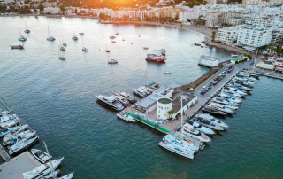 Se ubica sobre el muelle y permite disfrutar de vistas al mar, los barcos atracados y la bahía de Santa Eulalia.