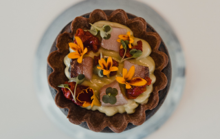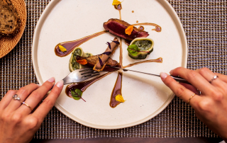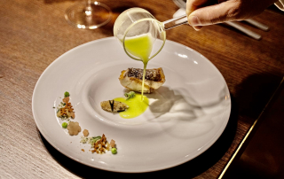 La carta acoge bocados gourmet o bien un menú degustación donde encontrar desde un Milhojas caramelizado de anguila ahumada, foie gras, cebolleta y manzana verde a una Merluza a la brasa albardada con tocineta ibérica sobre perlitas de hinojo y emulsión de berros. Todo ello, maridado con vinos con DO y elaborados postres. Un delirio que invita al placer.
